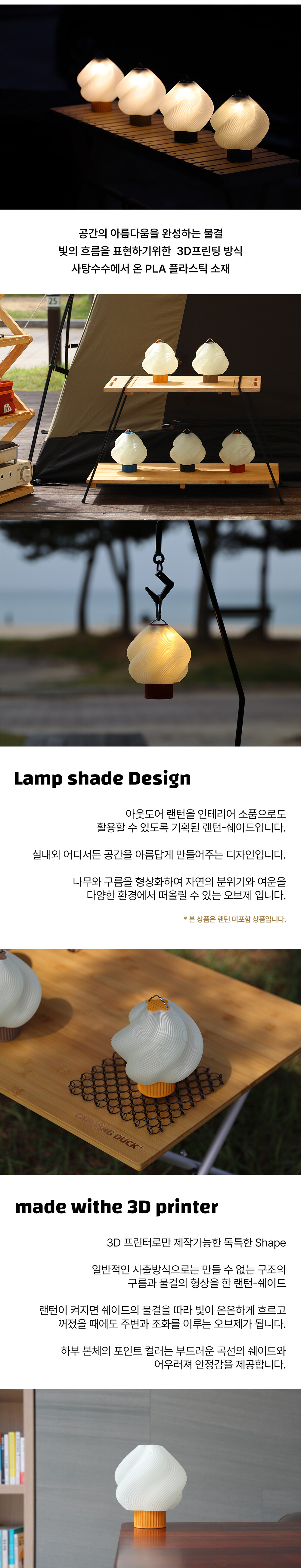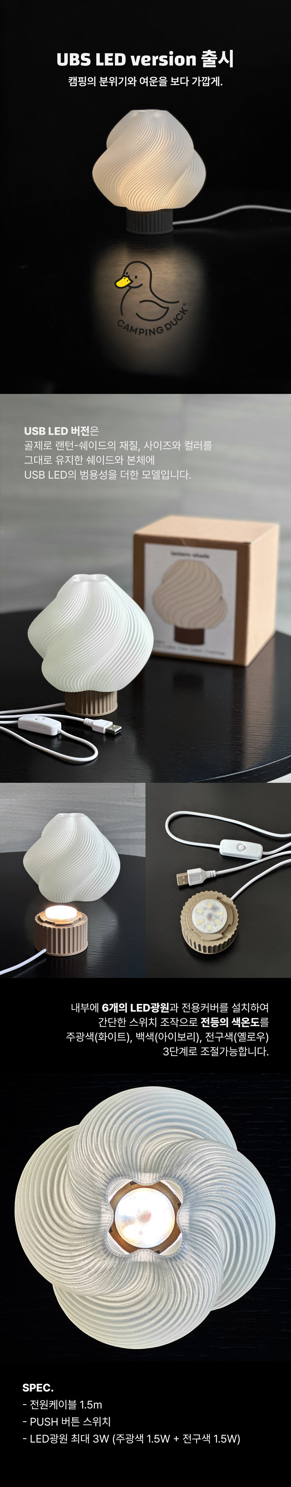 LAYER Lamp size_M 모델 (높이 14Cm /폭 12Cm/ USB케이블 길이 150Cm) 제품은 현재는 CampingDuck 브랜드의 ODM으로 출고되고 있습니다. welle 브랜드 혹은 특정 로고로의 변경은 QNA 혹은 1522-9894를 통해 문의 부탁드립니다.