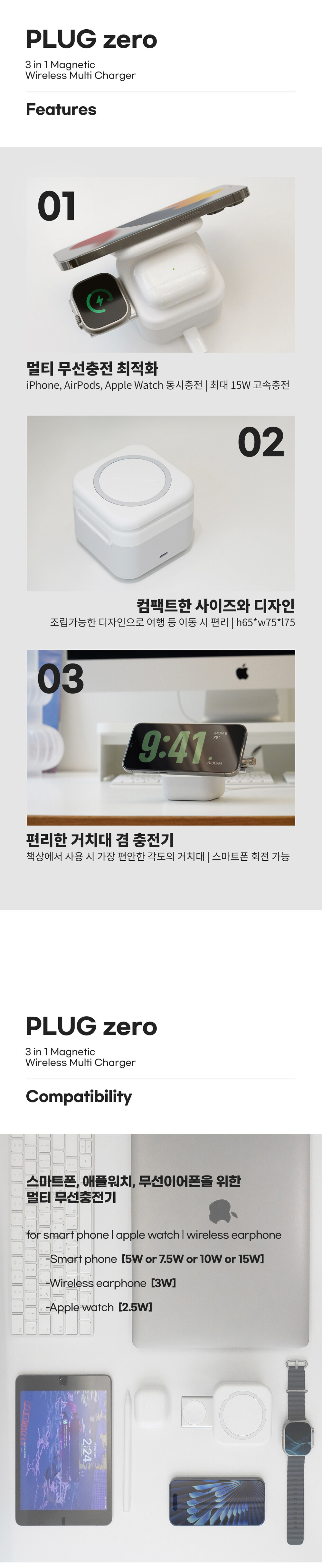 PLUG zero(플러그제로), 벨레 맥세이프 포터블 3in1 무선 멀티 고속충전기 거치대