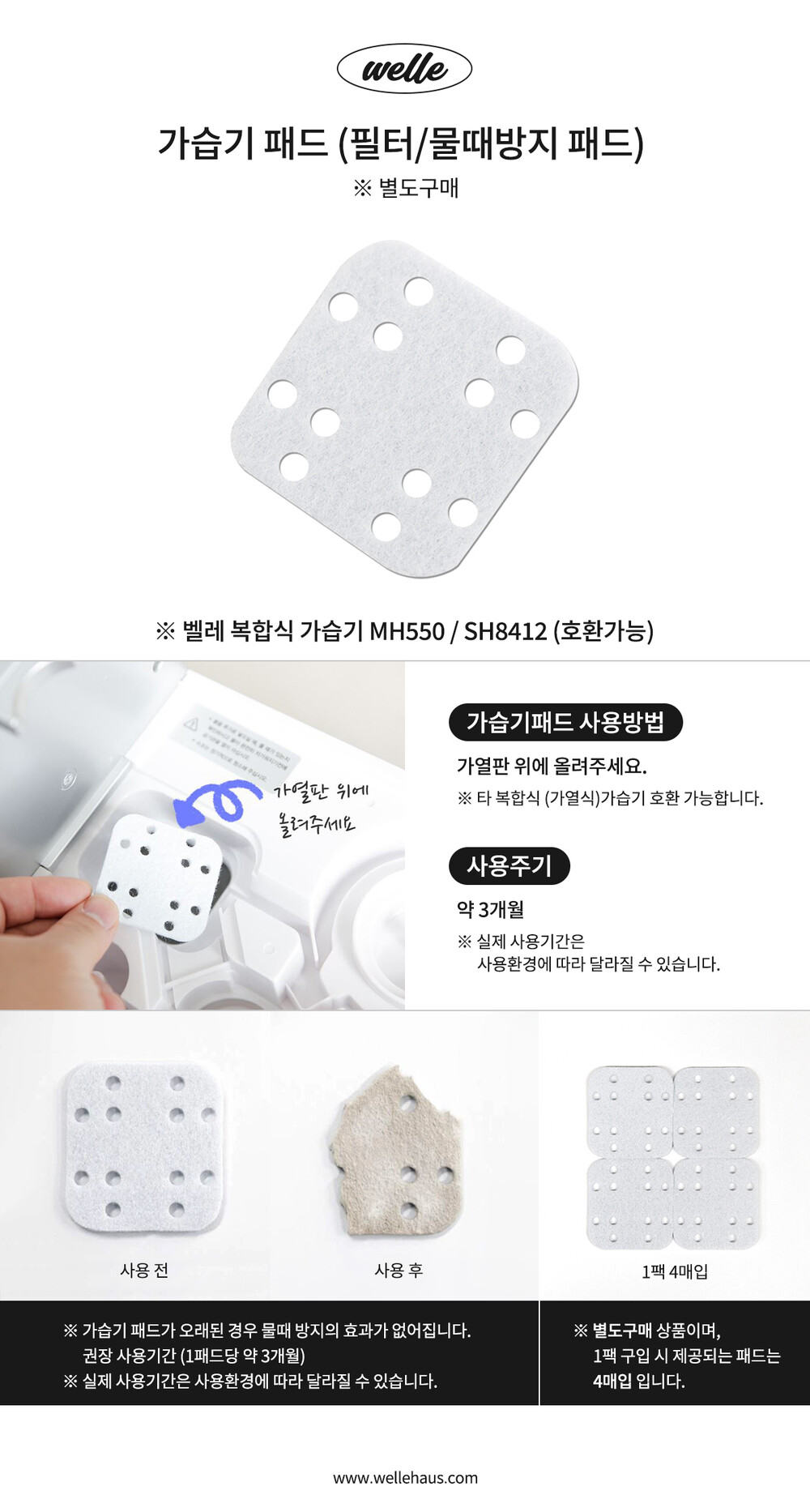 벨레 가습기 전용 (물때방지패드)